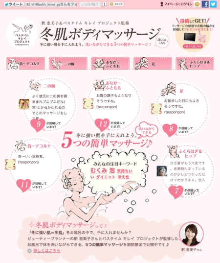 釈恵美子&バスタイム キレイ プロジェクト監修「冬肌ボディマッサージ」キャンペーンがスタート!