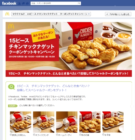 15ピース チキンマックナゲット クーポンゲットキャンペーンがスタート!
