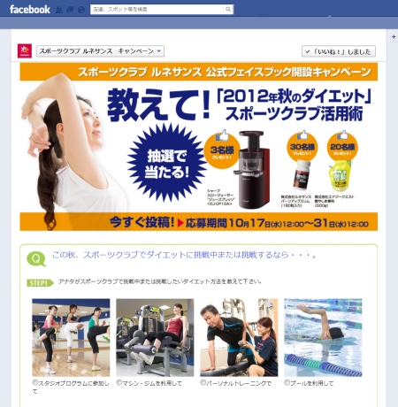 スポーツクラブ ルネサンス 公式フェイスブック開設キャンペーン開始