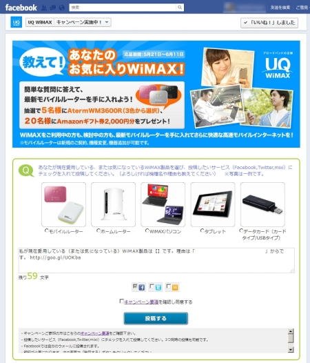 ■「教えて!あなたのお気に入りWiMAX!」キャンペーン http://www.uqwimax.jp/facebookcp/ 「UQ WiMAX」のFacebookページで、教えて!あなたのお気に入りWiMAX!」キャ […]